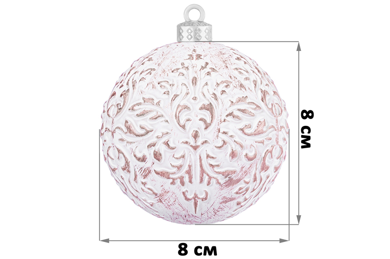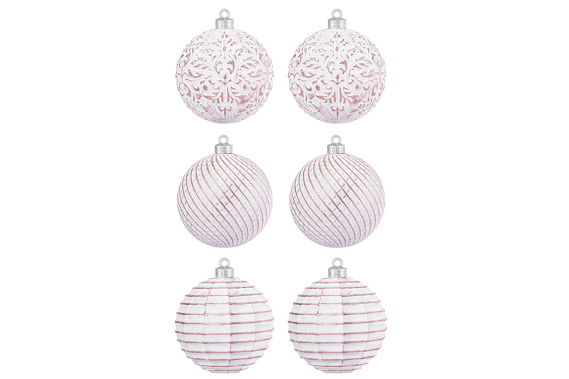 Набор 6 новогодних шаров 8*8 см "Винтаж" розовый с эффектом старины
