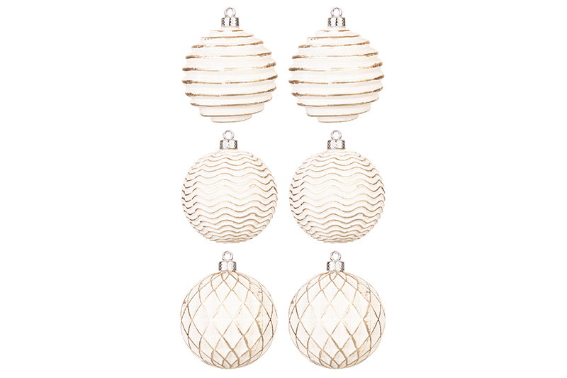 Набор 6 новогодних шаров 8*8 см "Винтаж" шампань с эффектом старины