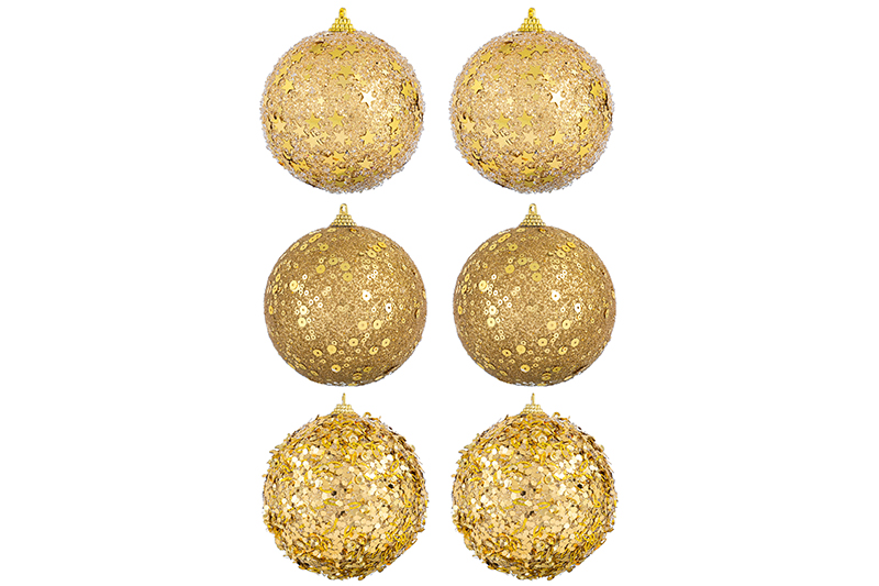 Набор 6 новогодних шаров 8*8 см "Золото"