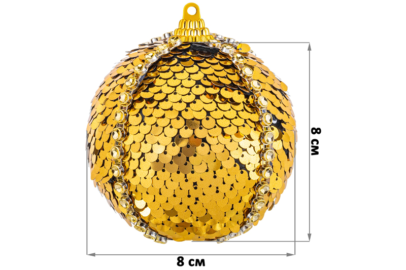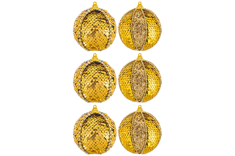 Набор 6 новогодних шаров 8*8 см "Золотые пайетки"
