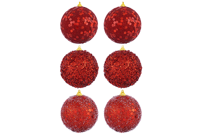 Набор 6 новогодних шаров 9,5*9,5 см "Красный"