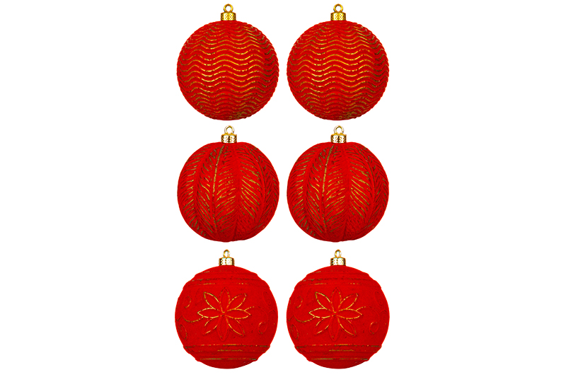 Набор 6 новогодних шаров 9,5*9,5 см "Красный бархат"
