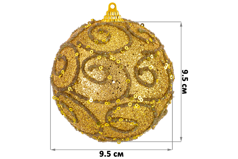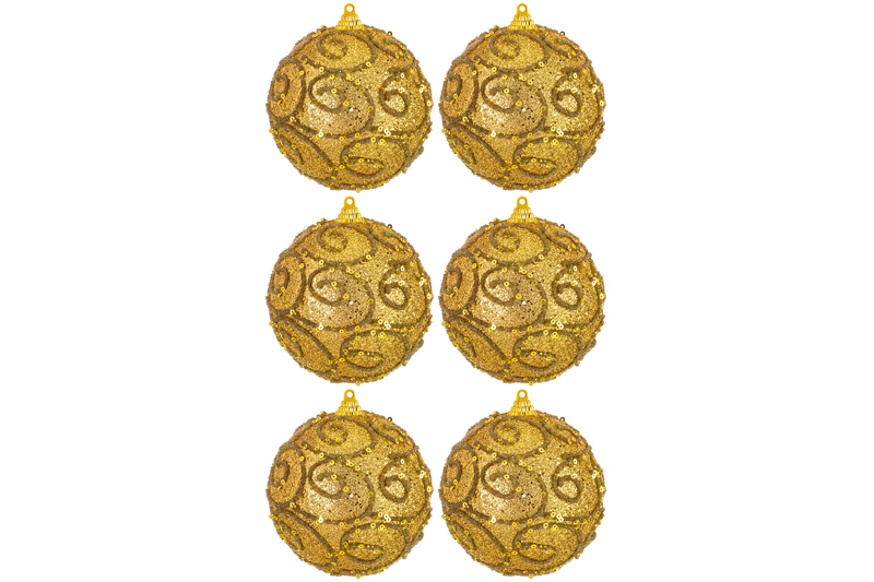 Набор 6 новогодних шаров 9,5*9,5 см "Вензеля" золото