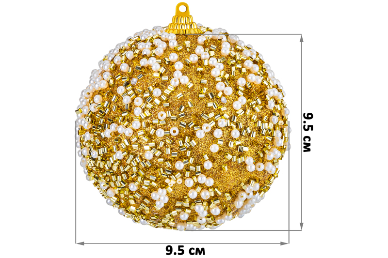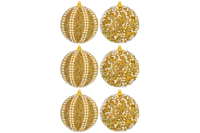 Набор 6 новогодних шаров 9,5*9,5 см "Жемчужины на золотом"