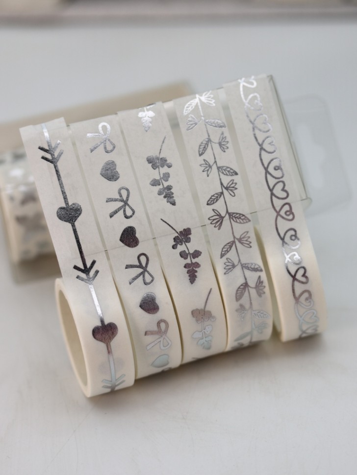 Набор декоративного скотча 5 шт. "Silver pattern", mix (1.5м*2м)
