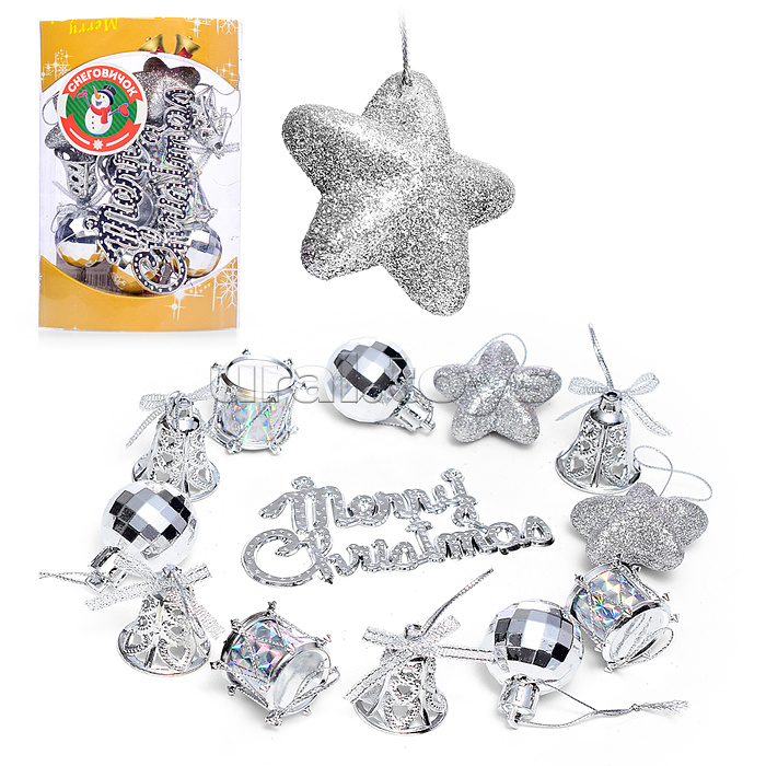 Набор новогодних украшений 3см*13шт серебро