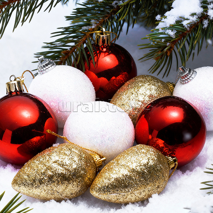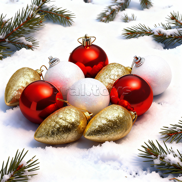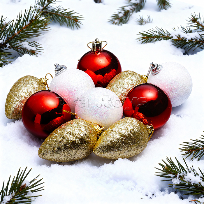 Набор новогодних украшений (золотые шишки, красные/белые шарики, 10шт х 5см)