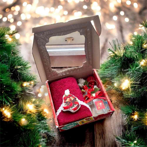 Набор подарочный новогодний из 3 предметов :электронная свеча в форме ёлки, ёлочная игрушка, полотенце размером 30*30 без выбора