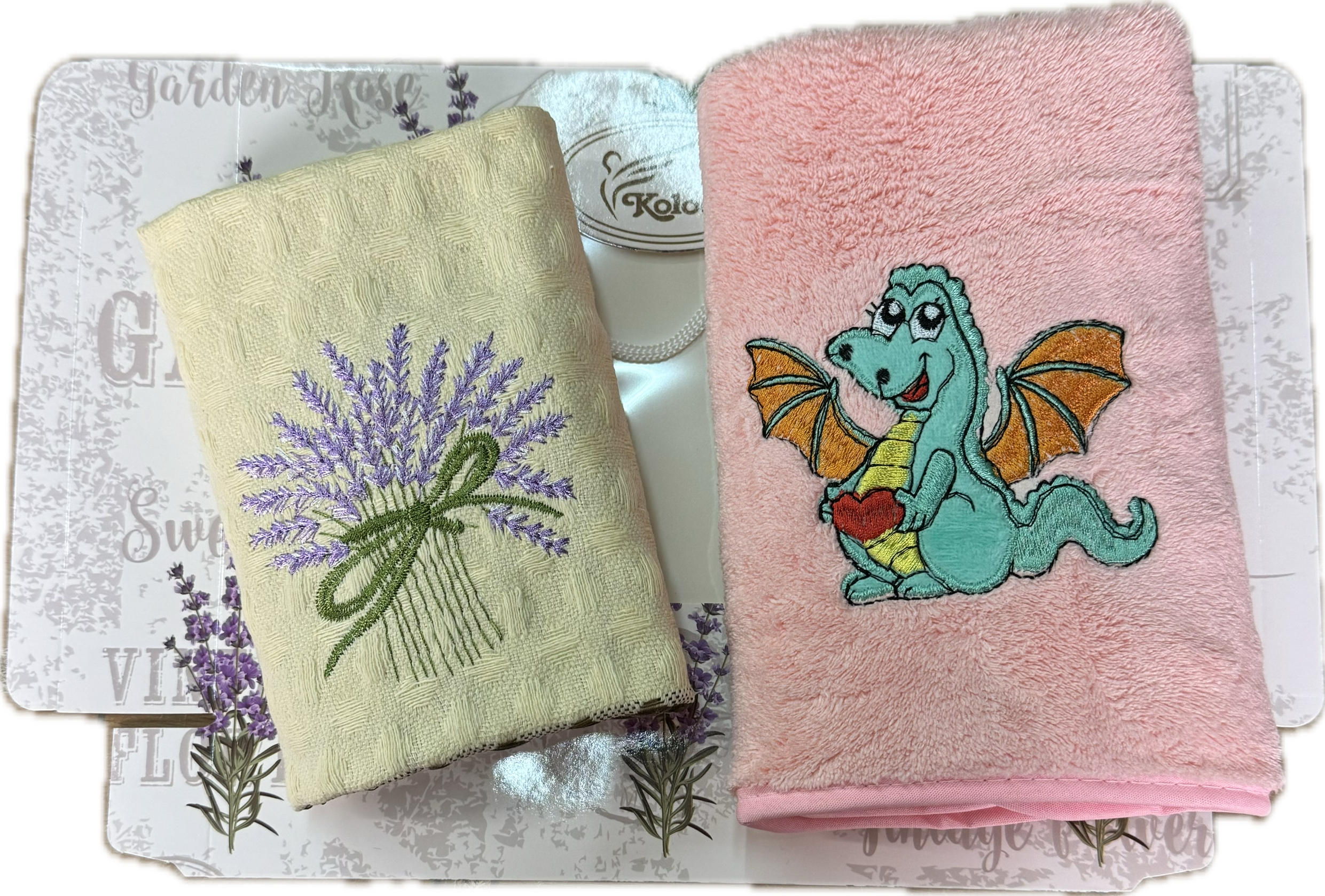 Набор полотенце микрофибра и крупная вафелька ЛАВАНДОВЫЙ ПРОВАНС 2 пр р-р 35х75 и 25х50