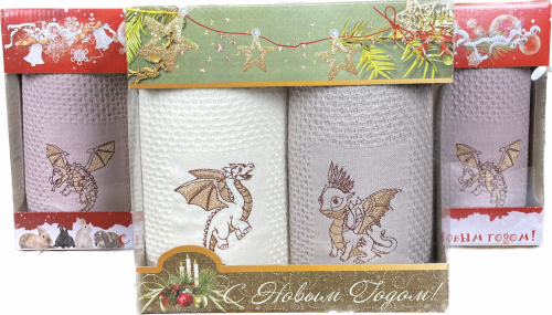 Набор полотенец крупная вафелька 700 - 07 ДРАКОНЫ СЕТКА ОКОШКО 2 пр р-р 25х50