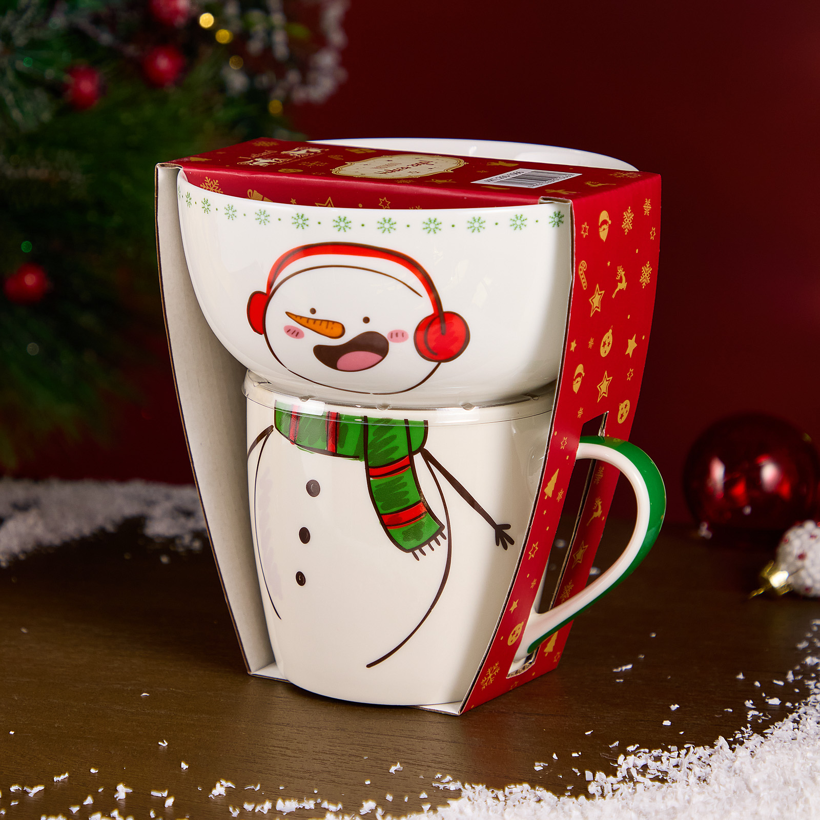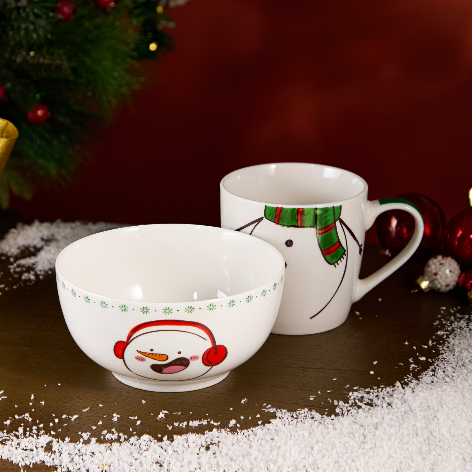 НАБОР ПОСУДЫ LEFARD "СНЕГОВИК" 2 ПР. (КРУЖКА 360МЛ, САЛАТНИК 500МЛ)