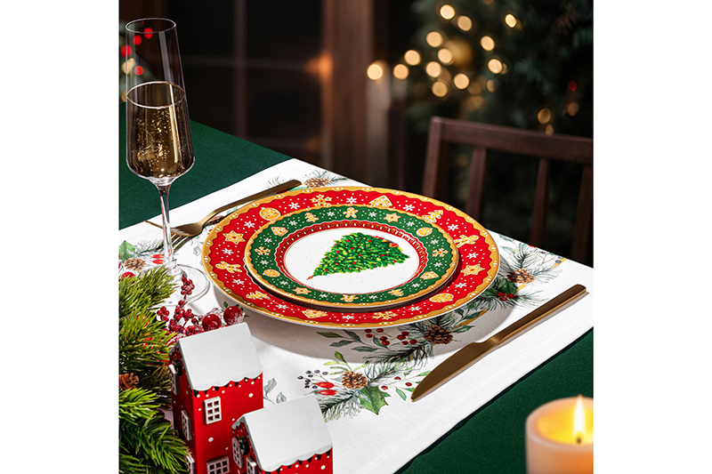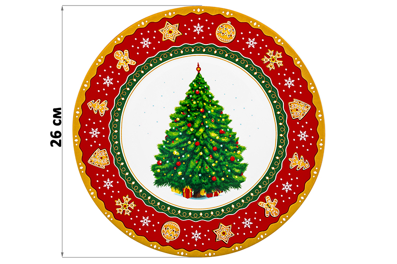 Набор тарелок 2 пр. 26*26*2 см "Новогодняя елка" красный узор, NEW BONE CHINA