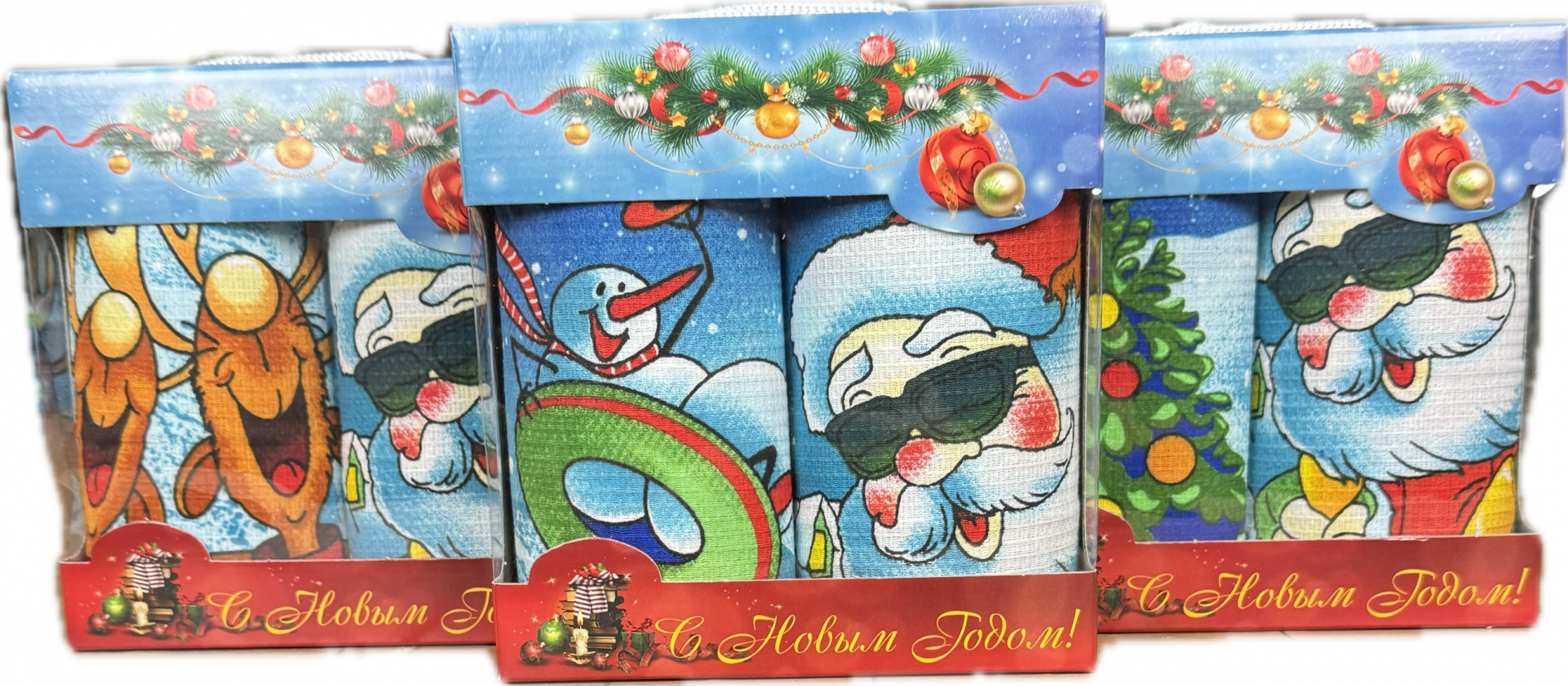Набор вафельных полотенец НОВОГОДНИЙ МАРАФОН вид 2 2 пр р-р 50х60
