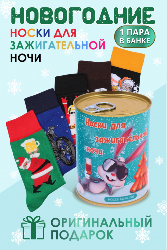 Консервированные носки в банке - оригинальный сувенир и подарок на любой случай жизни, может быть как отдельным подарком, так и дополнением к любому другому, а так же знаком внимания. Подарочная упаковка: жестяная банка. Размер банки: 9,7 х 7,5 х 7,5 см. Состав: 85% хлопок, 10% полиамид, 5% спандекс. Размер: 41-46 (универсальный). Цена указана за 1 банку. В банке 1 пара носков. Минимальный заказ 1 банка. Цвета и рисунки в ассортименте. Дизайн 4 41-46