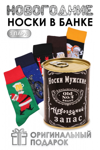 Консервированные носки в банке - оригинальный сувенир и подарок на любой случай жизни, может быть как отдельным подарком, так и дополнением к любому другому, а так же знаком внимания. Подарочная упаковка: жестяная банка. Размер банки: 9,7 х 7,5 х 7,5 см. Состав: 85% хлопок, 10% полиамид, 5% спандекс. Размер: 41-46 (универсальный). Цена указана за 1 банку. В банке 1 пара носков. Минимальный заказ 1 банка. Цвета и рисунки в ассортименте. Дизайн 8 41-46
