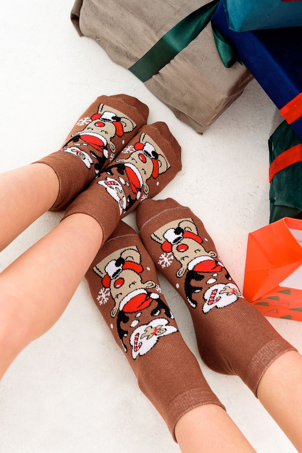 Подростковые новогодние носки с очаровательным рисунком. В упаковке 1 пара в пакете, расцветки на выбор