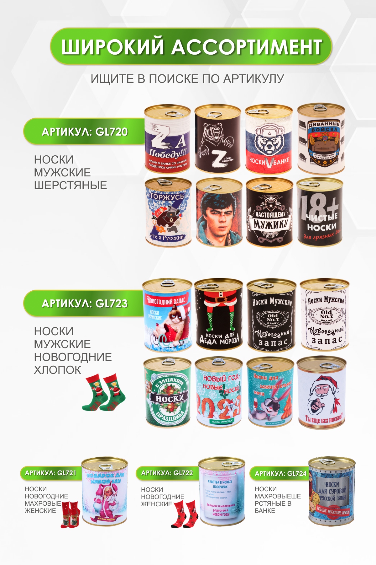 Консервированные носки в банке - оригинальный сувенир и подарок на любой случай жизни, может быть как отдельным подарком, так и дополнением к любому другому, а так же знаком внимания. Подарочная упаковка: жестяная банка. Размер банки: 9,7 х 7,5 х 7,5 см. Состав: 80% шерсть, 15% полиамид, 5% эластан​. Размер: 36-41 (универсальный). Цена указана за 1 банку. В банке 1 пара носков. Минимальный заказ 1 банка. Цвета и рисунки в ассортименте. Дизайн 1 36-41