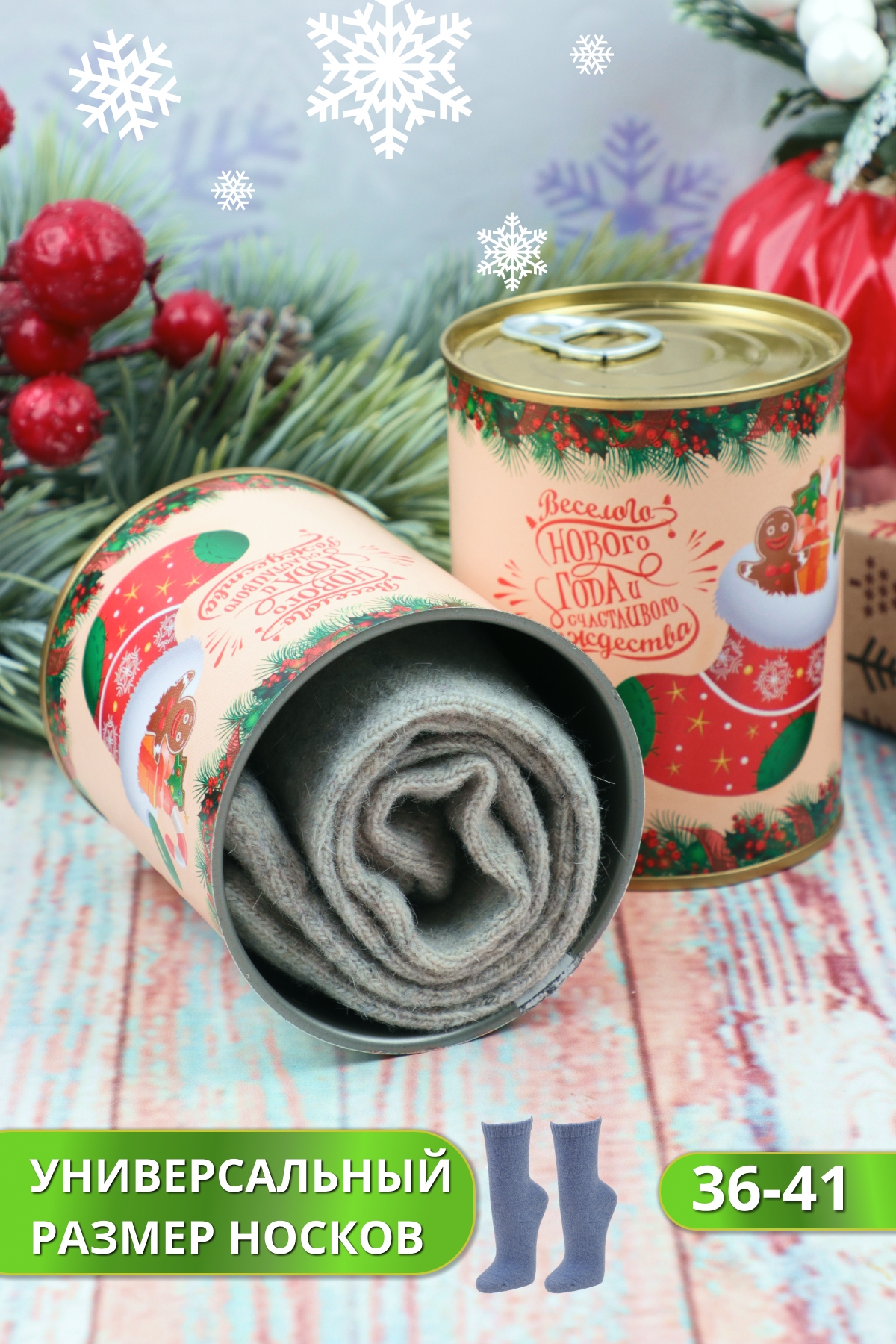 Носки шерстяные №GL725 в банке "Новогодние" - Дизайн 2 36-41