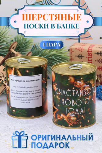 Консервированные носки в банке - оригинальный сувенир и подарок на любой случай жизни, может быть как отдельным подарком, так и дополнением к любому другому, а так же знаком внимания. Подарочная упаковка: жестяная банка. Размер банки: 9,7 х 7,5 х 7,5 см. Состав: 80% шерсть, 15% полиамид, 5% эластан​. Размер: 41-46 (универсальный). Цена указана за 1 банку. В банке 1 пара носков. Минимальный заказ 1 банка. Цвета и рисунки в ассортименте. Дизайн 2 41-46