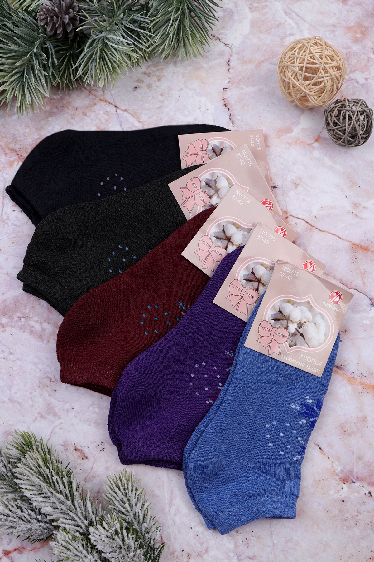 Короткие тёплые женские носки с удобной эластичной резинкой, которая не сдавливает ногу и не даёт носкам спадать. Носки мягкие и комфортные.