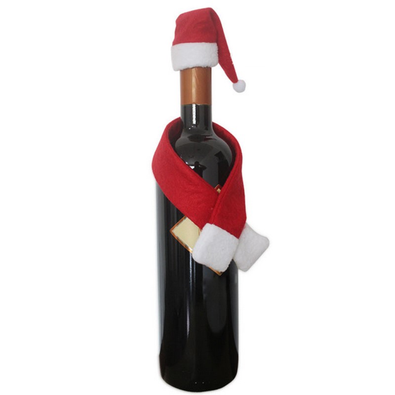 Новогоднее украшение для бутылок "Шапка и шарф Санта-Клауса" из фетра