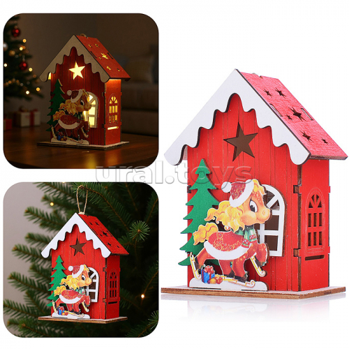 Новогоднее украшение "Домик со светом. Подкова на счастье" в пакете