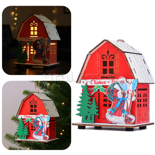 Новогоднее украшение "Домик со светом. Снеговик" в пакете