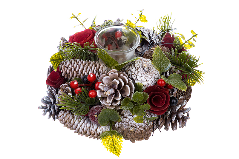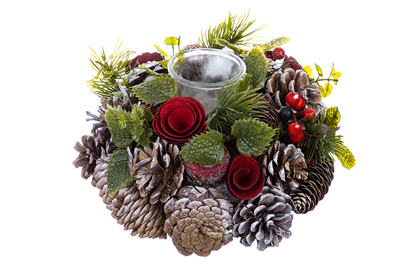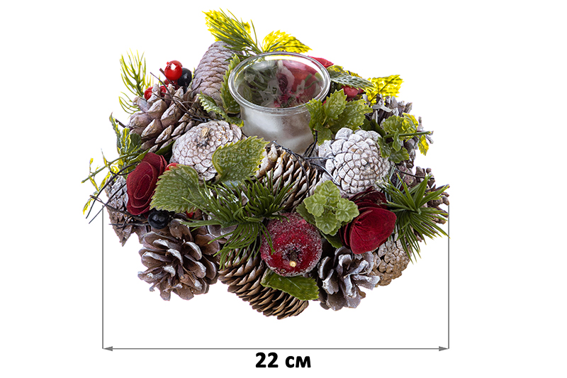 Праздничный подсвечник 22х22х11 см сможет стать украшением вашего интерьера на Новый год Дракона 2024 или Рождество. Ель, подарки, огни гирлянд, стужа за окном, семейный очаг с уютным камином и праздничный венок на двери - вот что хочется увидеть, когда думаешь про зимний праздник. Украсьте комнату интерьерным декором, чтобы создать новогоднюю или рождественскую атмосферу и домашний уют во всех деталях! Стильное изделие имеет емкость стакана для свечей диаметром 3,5 см. Настоящие сосновые шишки, пушистые еловые ветки, искусственные ягоды и нежные цветы - выберите подсвечник, который понравится вам больше всего! Декоративную подставку можно разместить на столе или на полке. Тогда праздничное настроение придет в ваш дом намного быстрее и остается намного дольше.