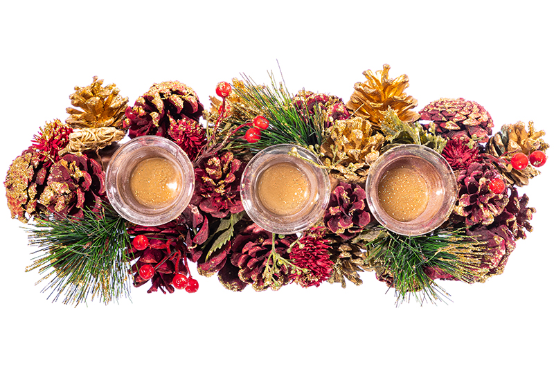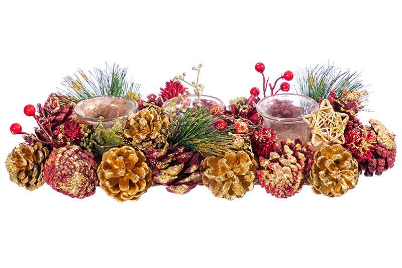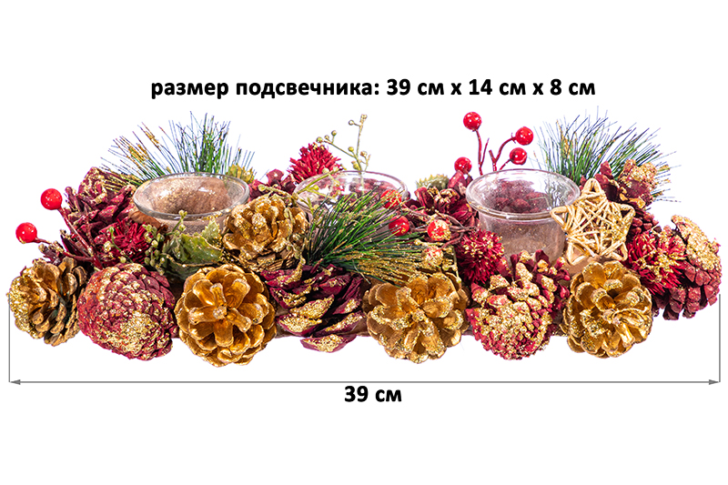 Новогоднее украшение подсвечник 39*14*8 см на 3 свечи, прямоугольный