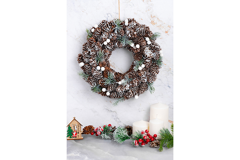 Новогоднее украшение венок 35*35*8 см "Снежный лес" круг