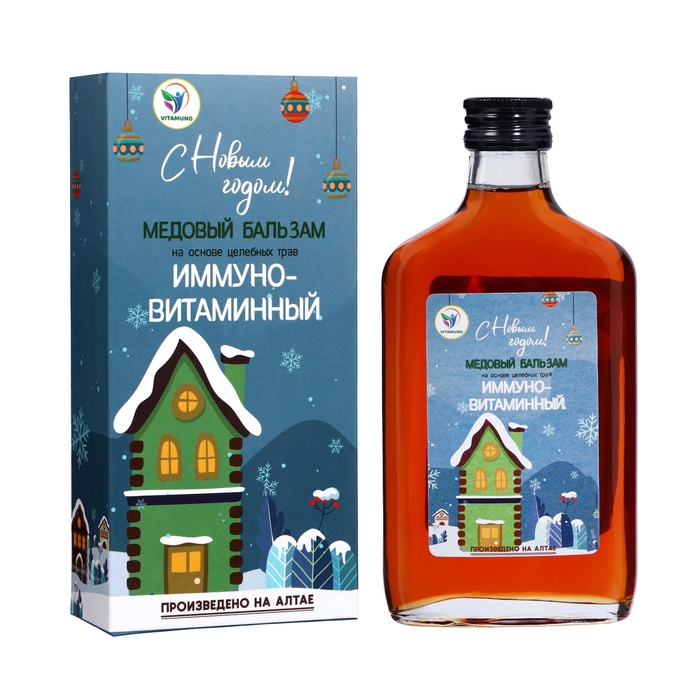 Новогодний безалкогольный алтайский медовый бальзам на травах Vitamuno «Иммуно-витаминный», 250 мл