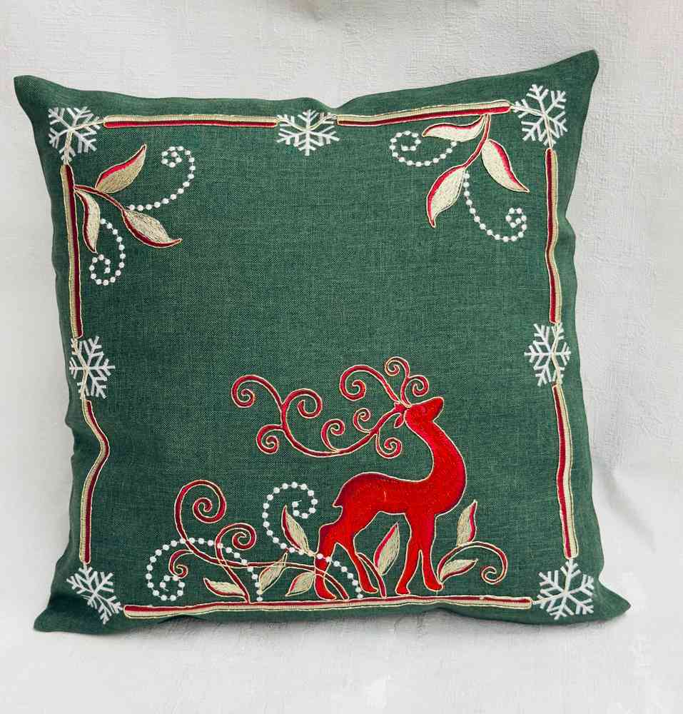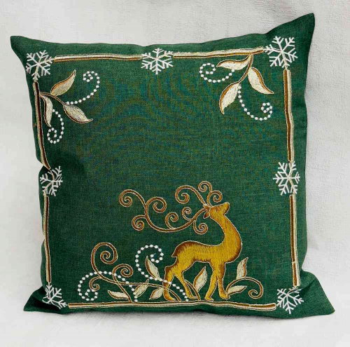 Новогодняя Наволочка лён с вышивкой На молний Размер 50на50см