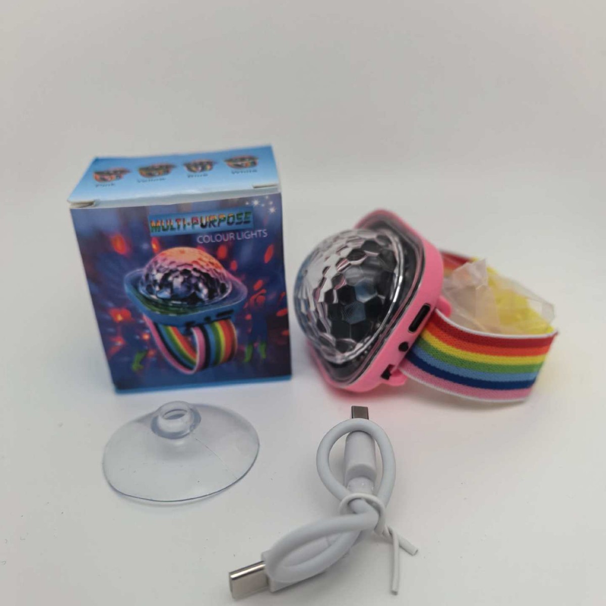 Закрепите на гладкой поверхности диско шар в машине или на елку и он создаст атмосферу веселья с цветомузыкой в любой ситуации.