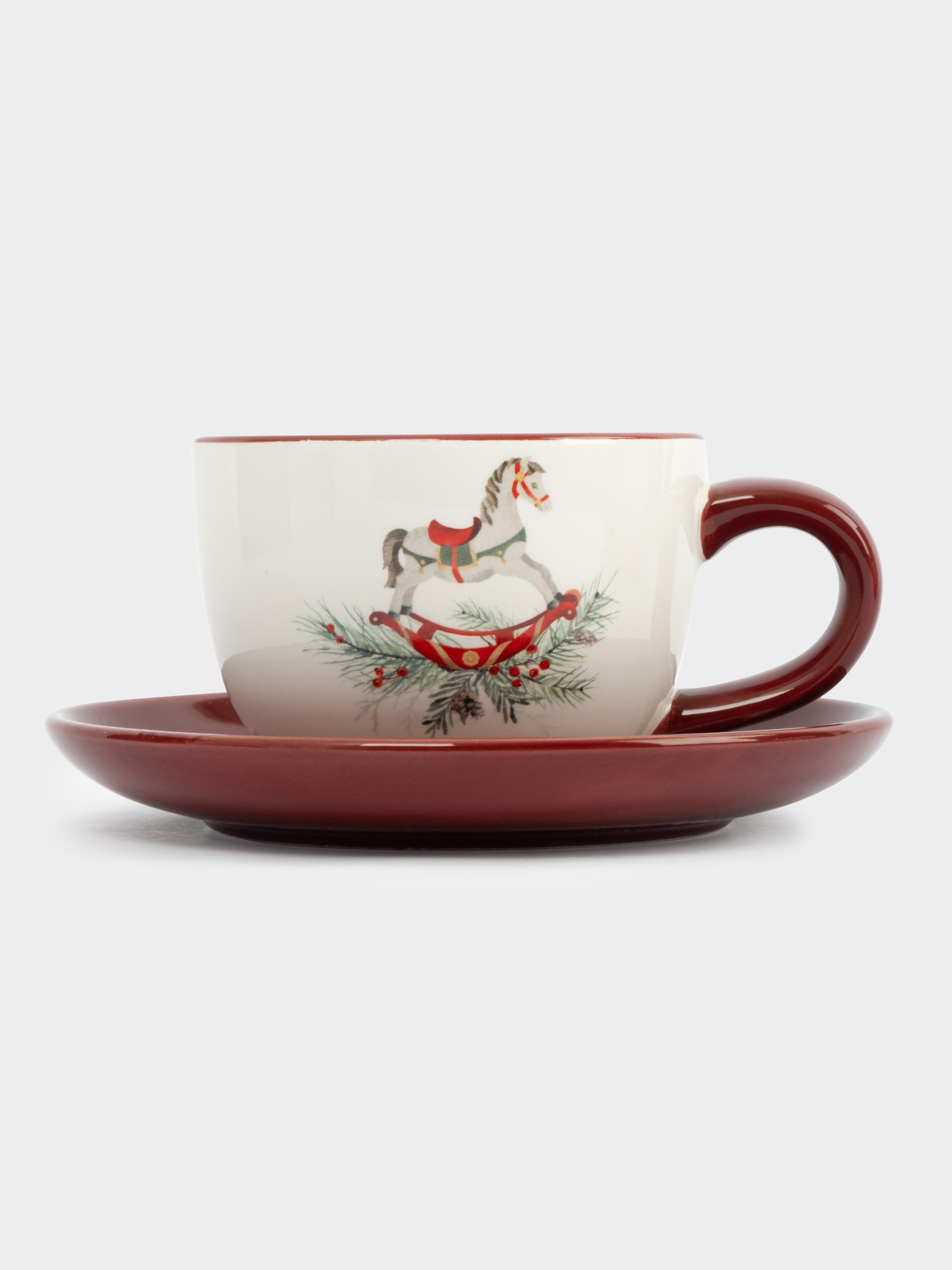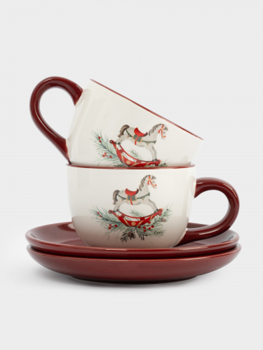 Пара чайная, 220 мл, 2 перс, 4 пр, керамика, красная, Лошадка, Festival