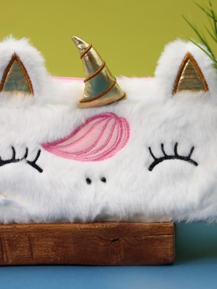 Пенал плюшевый "Unicorn golden horn", white (20*10 см)