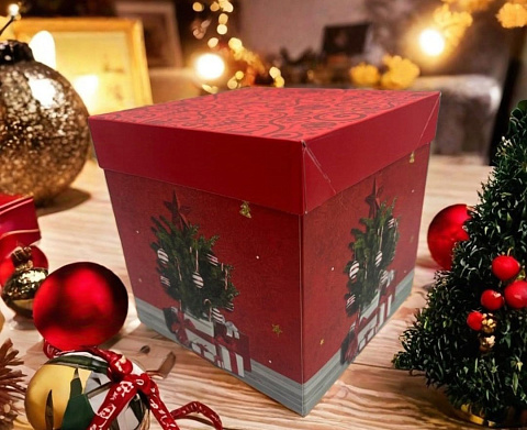 Коробка подарочная новогодняя, размер 15 см*15 см*15 см.