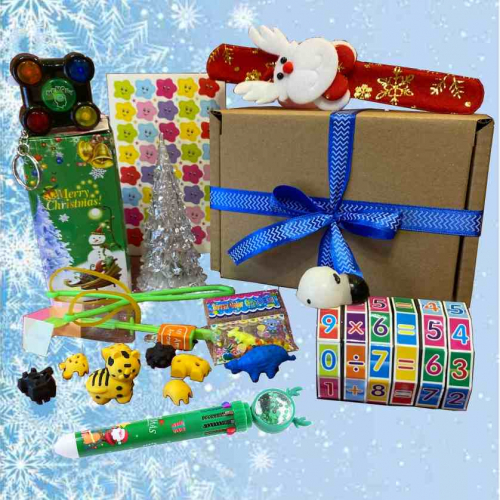 Состав набора: Игра электронная -брелок на запоминание Memory+Игрушка LED "Ель новогодняя"+Детский браслет Новогодний+Растущая в воде фигурка и шарики Орбиз+Летающая конструкция-рогатка. Светится в темноте+Сквиш-антистресс мини в ассортименте+Наклейки Звездочки+Ластик-конструктор Тигр+Головоломка "Математическая"+Ручка многоцветная, 10 цветов "Новогодняя" +Лента с рисунком 1,2 метра.