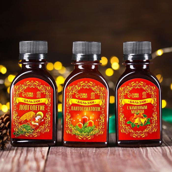 Подарочный набор новогодний, безалкогольных бальзамов 3 шт.×110 мл «Новый год: Долголетия в новом году»