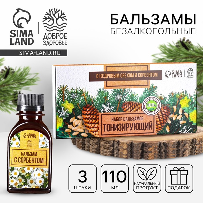 Подарочный набор новогодний, безалкогольных бальзамов 3 шт.×110 мл «Тонизирующий»