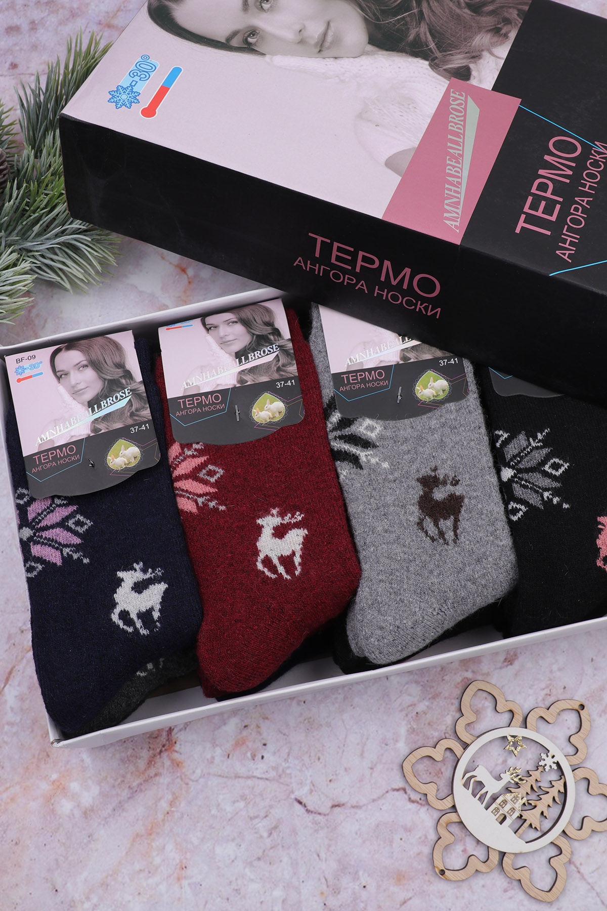 Подарочный набор женских носков "Амина" (ангора) №BF-09 (14/317) - 37-41