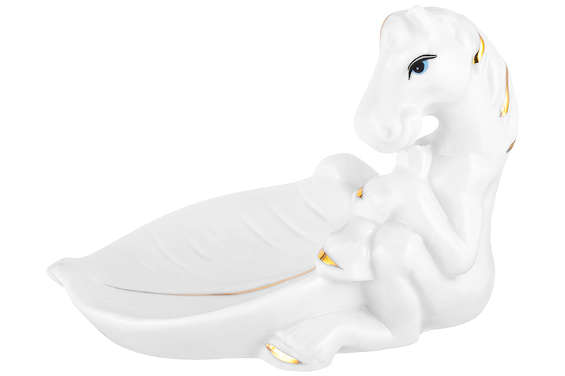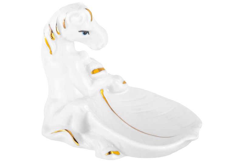 Подставка для украшений 8,5*6*6,5 см "Лошадь" белая с золотом, фарфор