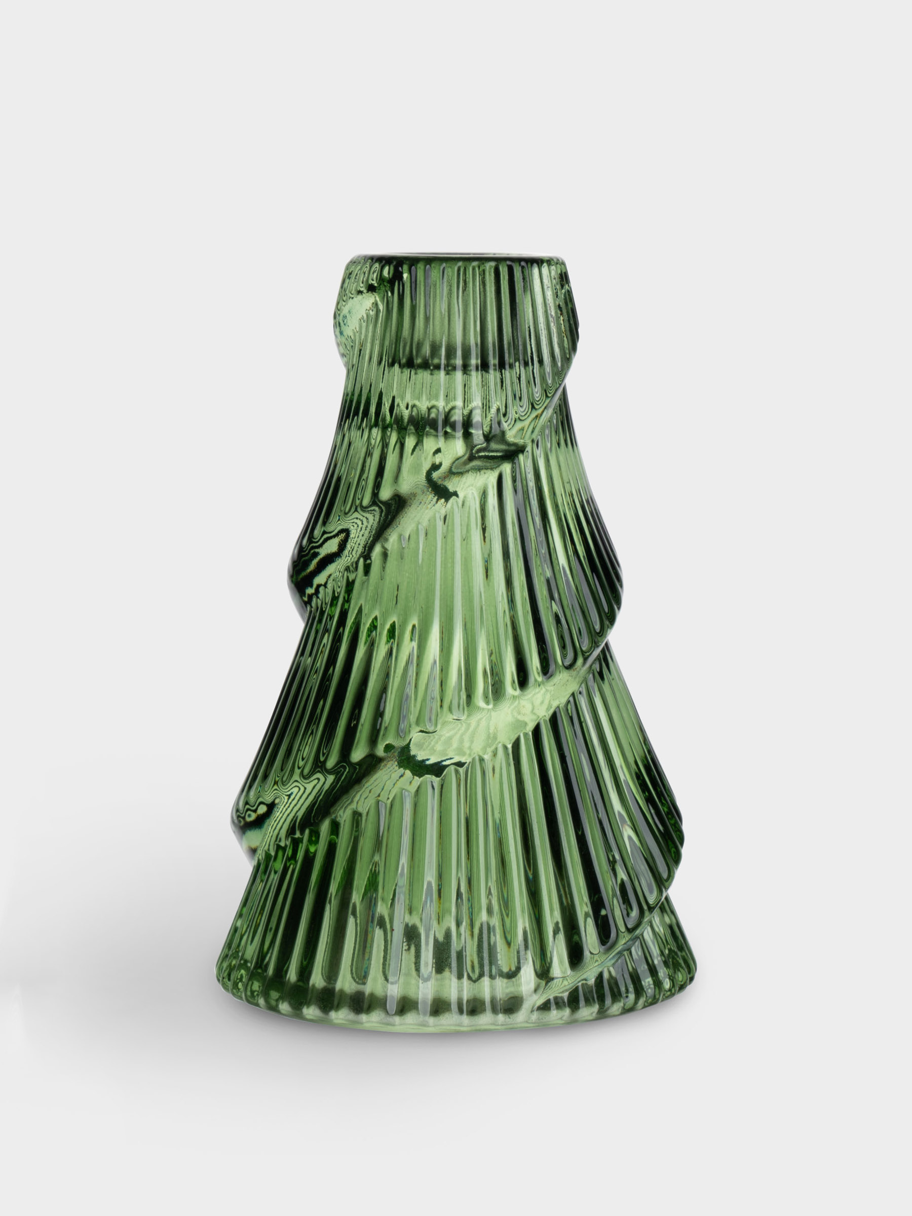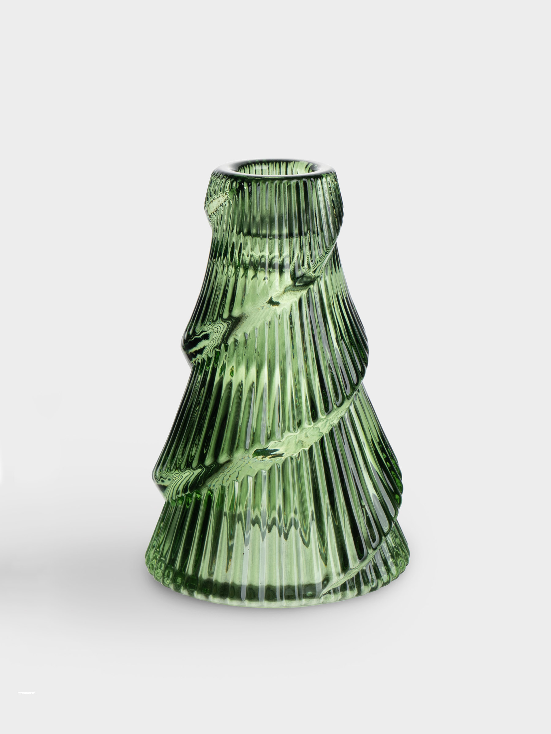 Подсвечник, 12 см, для тонкой свечи, стекло, зеленый, Елка, Lyric