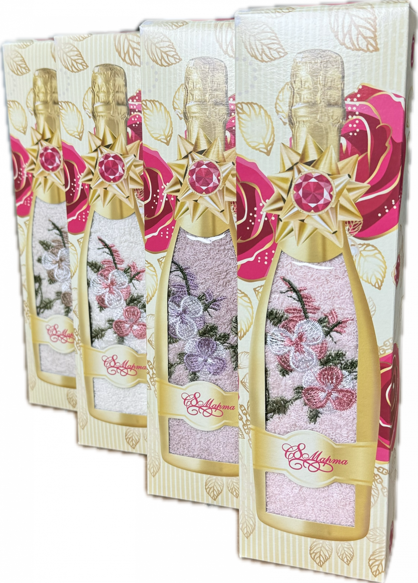 Полотенце махровое в подарочной коробке 12 - С БУКЕТИК С ЦВЕТКОМ ВЫШИВКА БУТЫЛОЧКА 1 пр р- р 35х75
