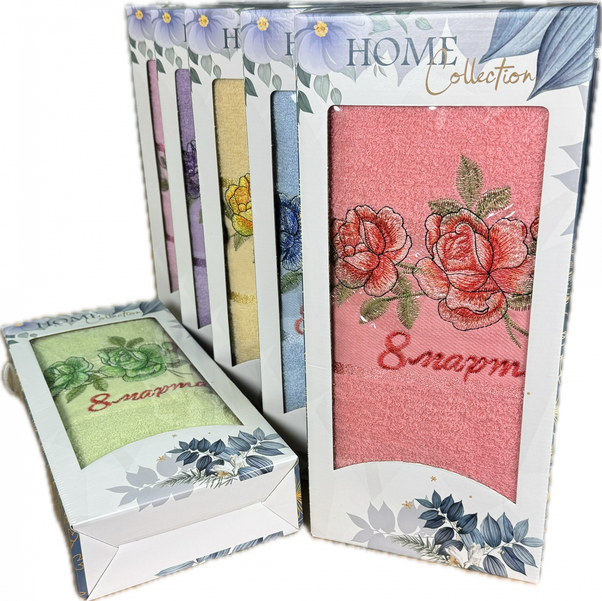 Полотенце махровое в подарочной коробке 8 МАРТА РОЗЫ ВЫШИВКА 1 пр р-р 70х140