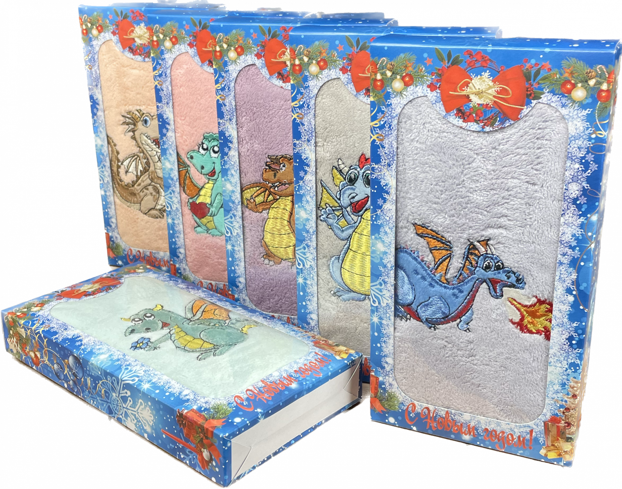 Полотенце микрофибра в подарочной коробке 98 - 57 ДРАКОНЧИКИ ВЫШИВКА С ОКАНТОВКОЙ 1 пр р-р 35х75