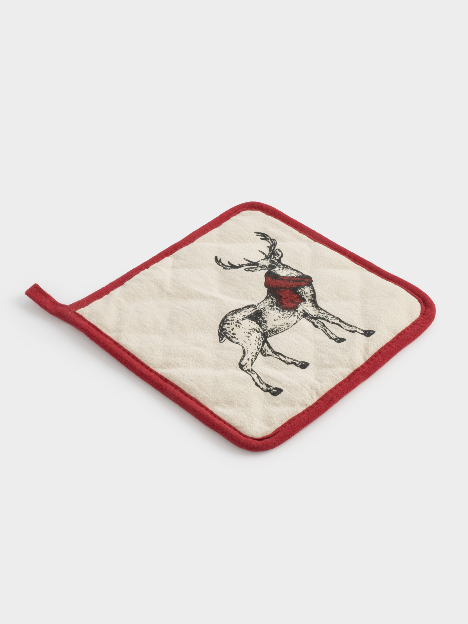 Прихватка, 20x20 см, хлопок, серо-бежевая, Олень в шарфе, Deer