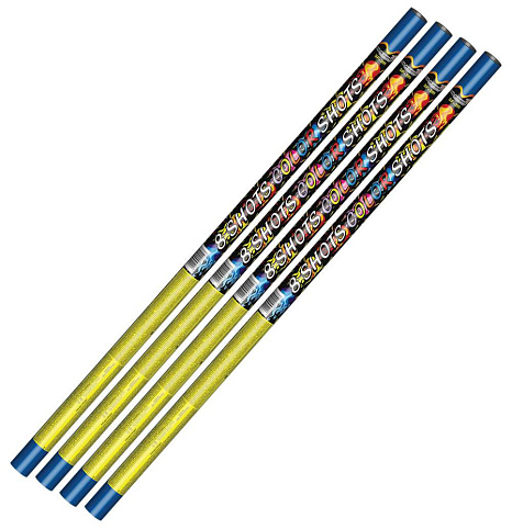 Описание эффектов: 8 цветных выстрелов с треском и мерцанием.