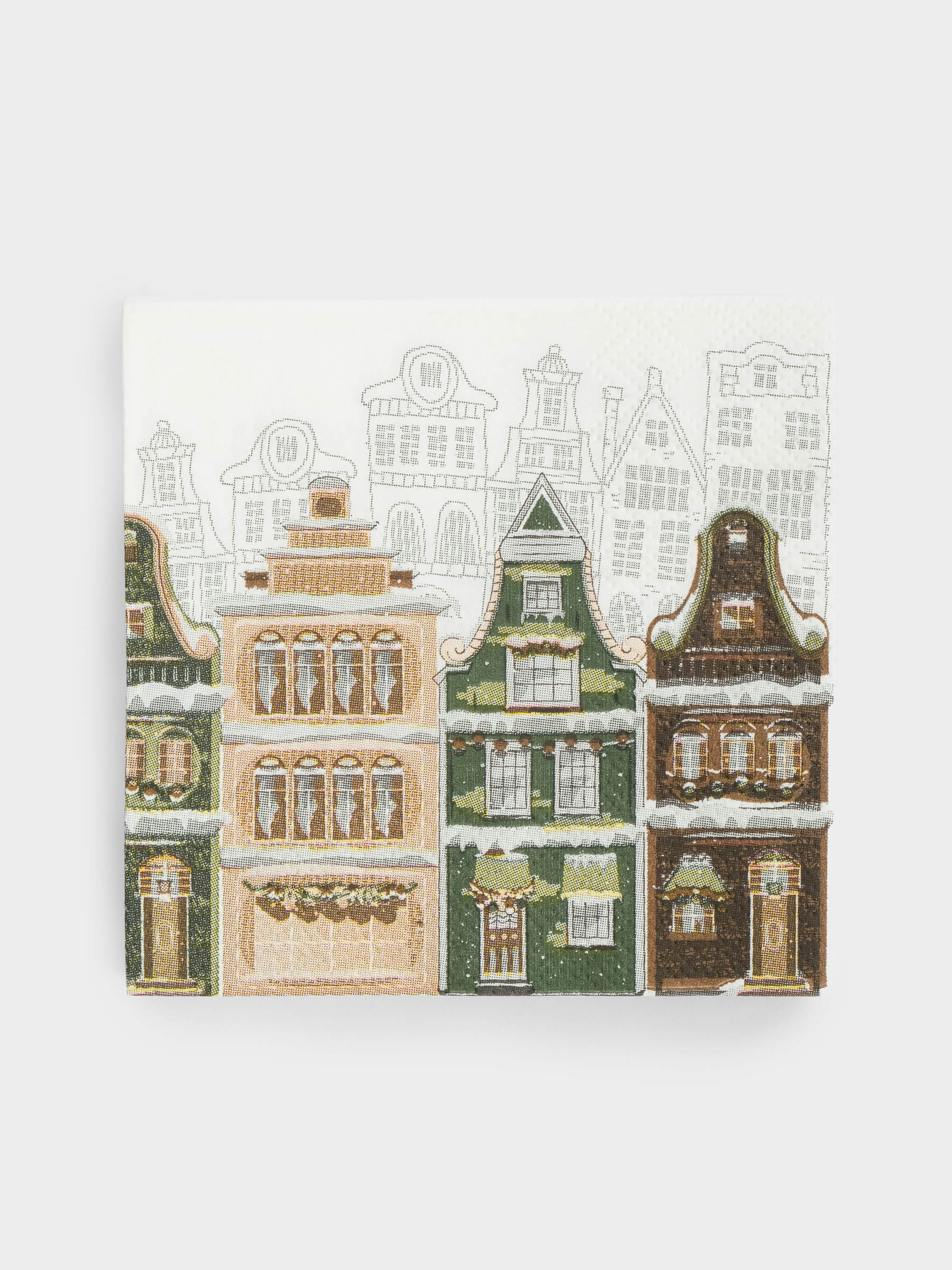 Салфетки бумажные, 21х21 см, 20 шт, квадратные, белые, Дома, Town
