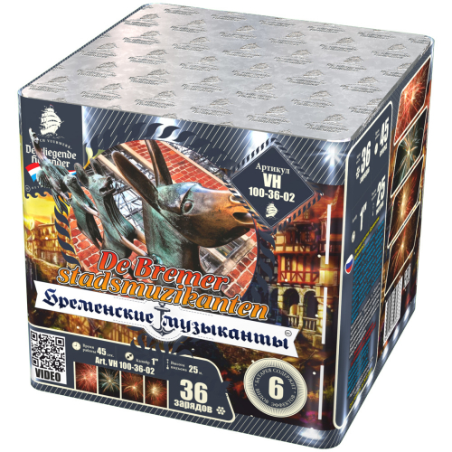 В интернет магазине можно купить батарею салютов Бременские музыканты 36 залпов 1.0 калибр VH100-36-02 Летучий Голландец и другие фейерверки оптом и в розницу по недорогим ценам с доставкой по России.