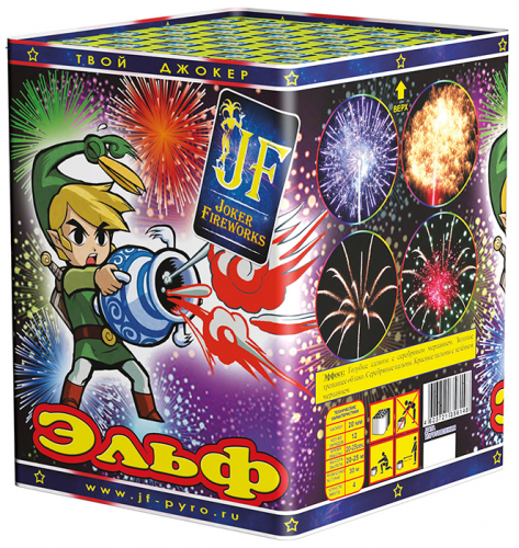 Батарея салютов Эльф 12 залпов 0.8 калибр JF C20-12/01 Джокер, описание, характеристика: